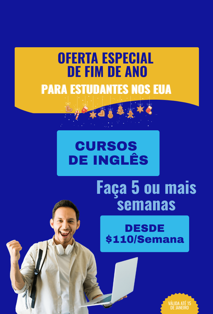 Este curso é perfeito para objetivos acadêmicos, para estudantes que pretendem estudar em faculdades ou universidades americanas (com Nível Avançado 5 substituindo notas no TOEFL/IELTS) e para avanço profissional, potencializando oportunidades de emprego e crescimento profissional. Incluí programas de Inglês Geral em diferentes intensidades: 22, 18 e 16 horas por semana, sendo os dois primeiros elegíveis para um Visto de Estudante F1. Eles são ministrados em seis níveis, do Iniciante ao Fluente, e começam todas as segundas-feiras.