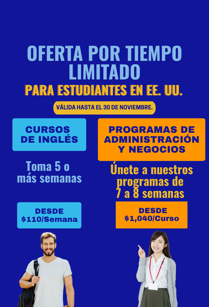 ¿Estás en Estados Unidos? ¡Aprenda inglés por sólo $110/semana o estudie negocios por sólo $1.040/curso!