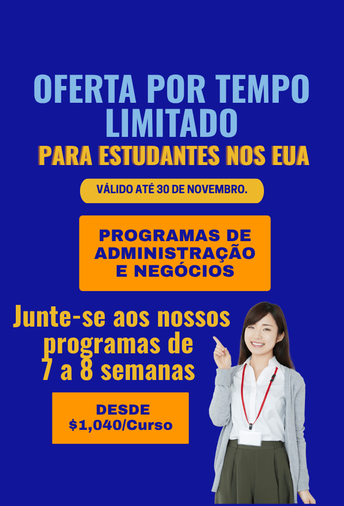 Está nos Estados Unidos? Aprenda inglês por apenas US$ 110/semana ou estude negócios por apenas US$ 1.040/curso!