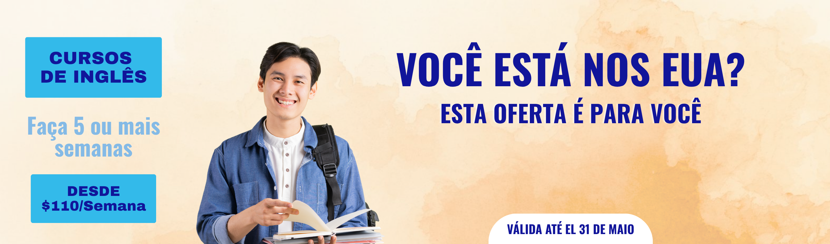 Está nos Estados Unidos? Aprenda inglês por apenas US$ 110/semana ou estude negócios por apenas US$1,250/curso!