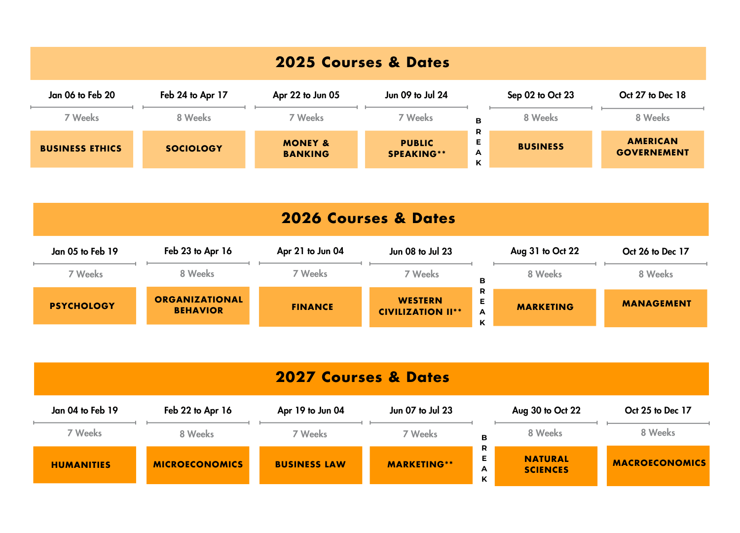 | In 2024 - summer course required | 5 Weeks | Jul 28 - Aug 31 |