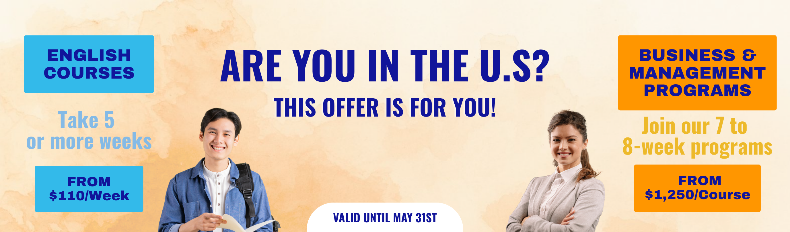 Are you in the US? Learn English for just $110/week or Study Business for only $1,250/course!